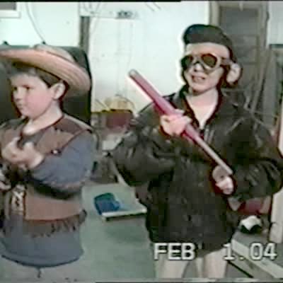 2 boys in costumes one as Elvis one as a cowboy, play Twinkle Twinkle with pop guns. They also sing.