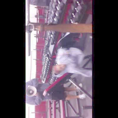 A man wakes a teen girl sleeping in a weight room with a siren horn.