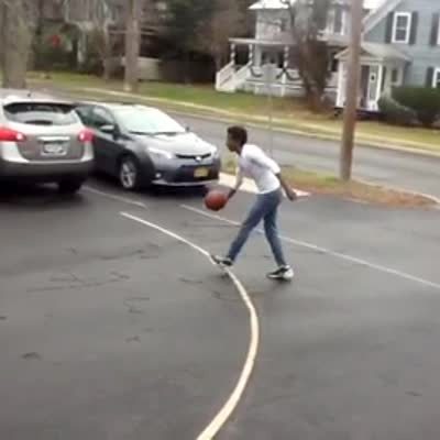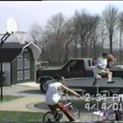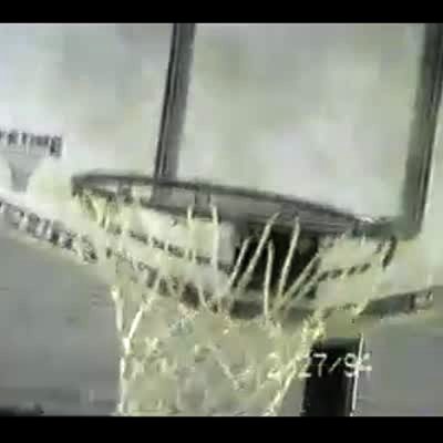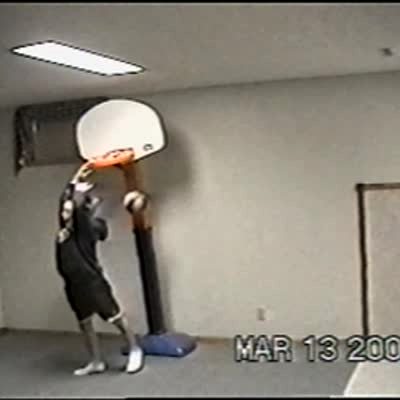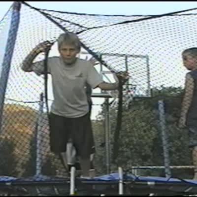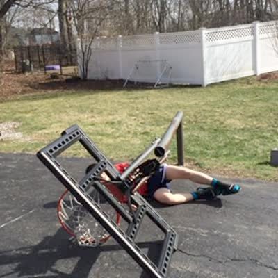 Bonehead Kid. Boy on trampoline sinks basket and breaks backboard. (montage) basketball