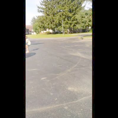 A man sits in a lawn chair for an Ice Bucket Challenge before his son and two daughters try to push a cooler of water over the porch railing behind him at 1:05:00. When it won't move, they whine that they can't do it and the boy pushes harder, causing the entire cooler to fall on the man's head before a younger child is heard crying. ALS Ice bucket challenge.