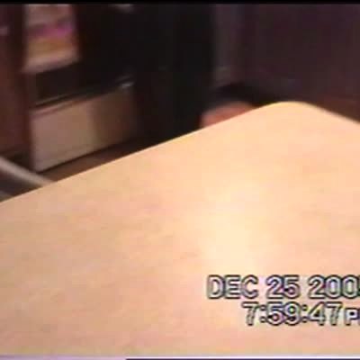A young girl mirrors a man's movements for one hundred dollars at the kitchen table. The man sips the water out of the cup then spits it out later and the girl spits simultaneously to win the money.