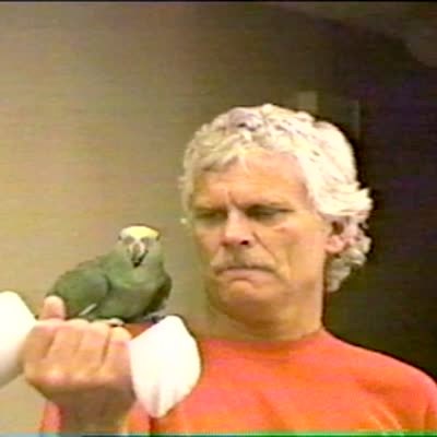 Poodle dog barks the same number of times as man's fingers that are held up.