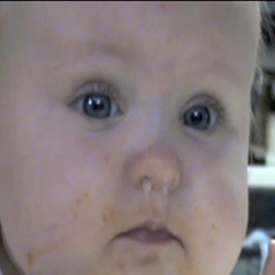 Baby girl blows snot in and out of nose. Gross. (long for edit).