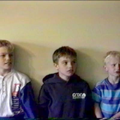 Boy picks booger / snot from his nose and puts it on his brother's head. Sibling Rivalry, gross.