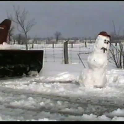 A.A. Destroy a snowman Man runs over snowman with huge snow blower on tractor