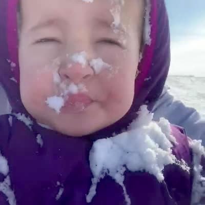 A woman in a car records the snow outside her window with the window open. They pass by a snow blower and the woman gets covered in snow as she screams. The man who drives tells her she should've been more careful.
