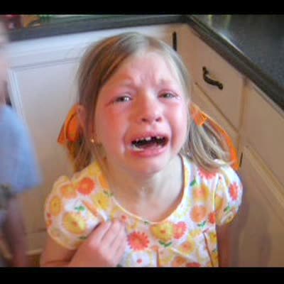Boy screams and calls his sister an idiot after she pulls his loose tooth out. Sibling rivalry.