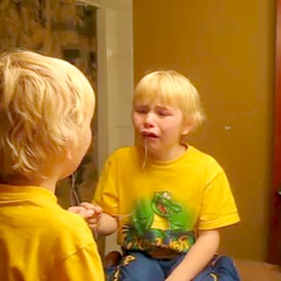 "The Tooth Hurts" A young boy pulls his tooth and says "but I have school tomorrow, I'm gonna look like an idiot!" and cries in the living-room.