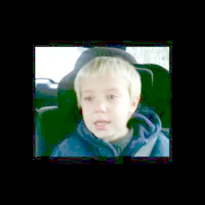 A young boy cries in the back seat of a car, sad that George Washington is dead. He says he misses him and doesn't want him to be dead. Caucasian.