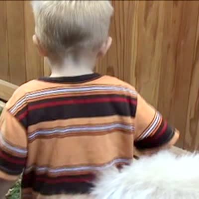 A young boy cries after he cuts a strip of his hair off on the top middle of his head. He asks if it'll grow back in the morning and his mom says no, and he cries harder and asks if he still has to go to school the next morning.
