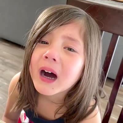 A tot girl cries because she cannot eat pizza because she only knows how to eat ice cream.