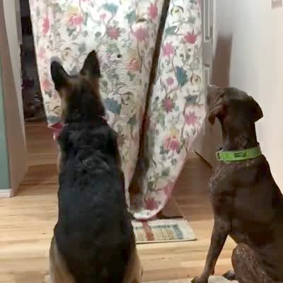 Ferrets taking socks out of drawers and hiding them under dresser.