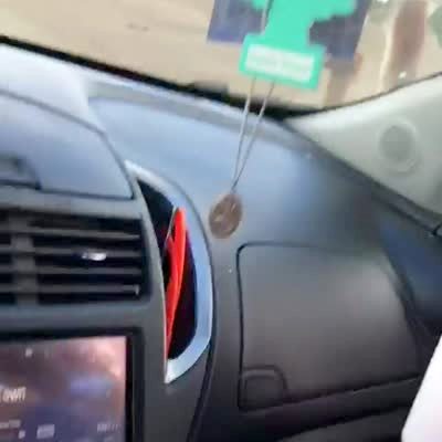A woman feeds a llama at a drive through safari, but then she feeds a second one and the first one spits all over her in the car.