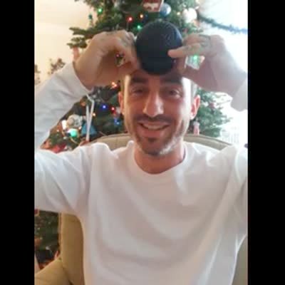 A young boy says his father brought home an Alexa speaker and the cameraman reveals the object and it's a paint sponge.
