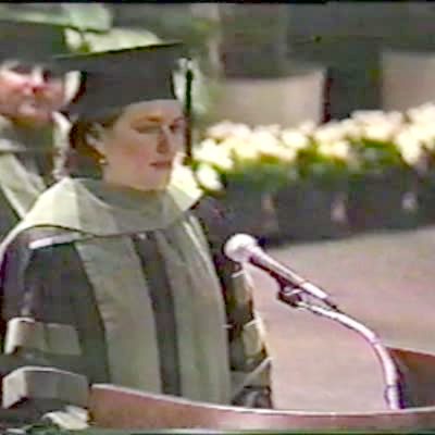 As graduation speaker says, "the world awaits you", a cardboard globe drops to the stage.