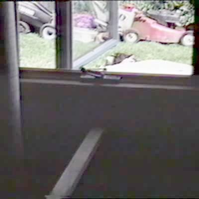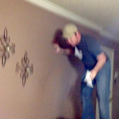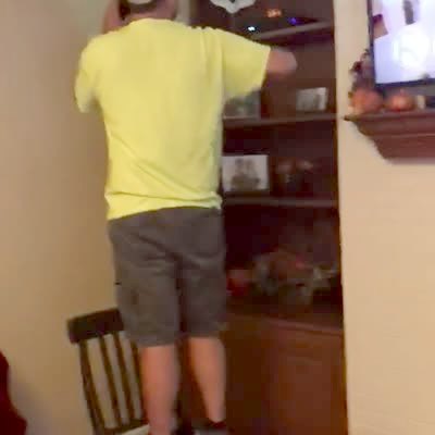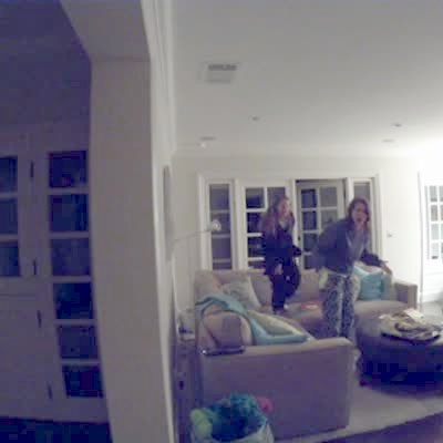 "Arachnophobic Flip Out" An adult man walks into the house and says that he walked through a spider web and asks if there is a spider on his back. Two girls scream and say that there is and the man screams and runs around the house trying to take off his shirt indoors. Nest video cam