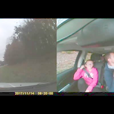 "Back Seat Spider Scare" A boy comments on how to impress the ladies in the car, then suddenly screams in a panic when he sees a spider.