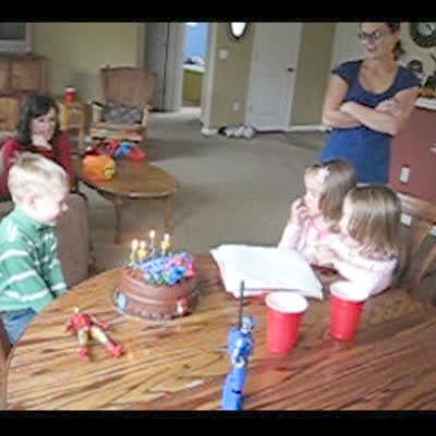 A young boy wishes spider-man was real before blowing out his birthday candles.