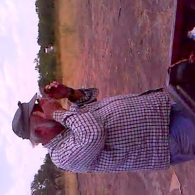 An older senior man with grey sideburns discovers fake spider on his shoulder outdoors and jumps and screams to fling it off of him.