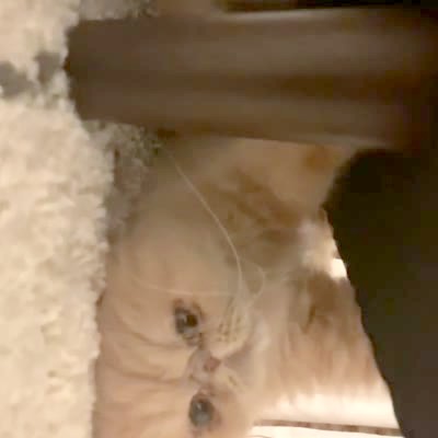 A cat crawls upside down underneath a couch in a living room and looks like Spider-Man and the woman with the camera laughs.