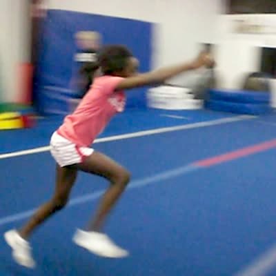 GIrl does a backflip off the springboard and lands on her face. Gymnastics. NO TAILS.