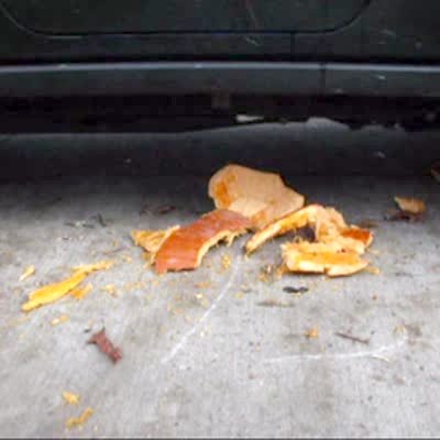 A.A. Crack an Egg Egg on a construction cone in a parking lot is squashed by a helicopter.