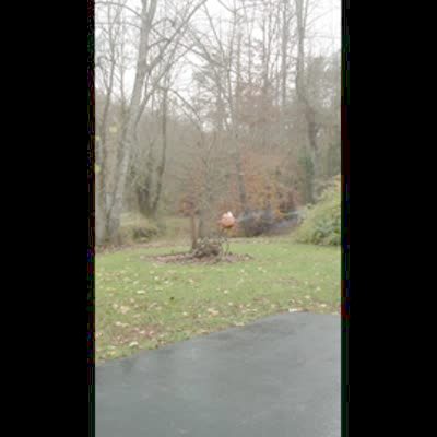 A pumpkin is exploded in a yard. Spark of fire at 0:30.