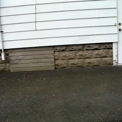 A man steps on squeaky toy on front porch and falls down. Security Footage