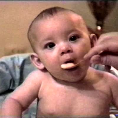 "Baby Scalp Scratcher" A woman uses a scalp massager on a baby boy in the living room indoors and the boy squirms and makes a face when he feels it on his head. Cute