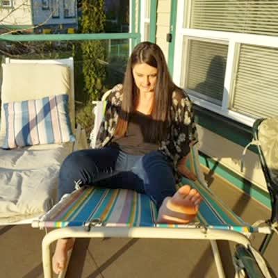 A young woman lays on a hammock chair and kicks her feet then it breaks in the middle and she falls down to the floor.