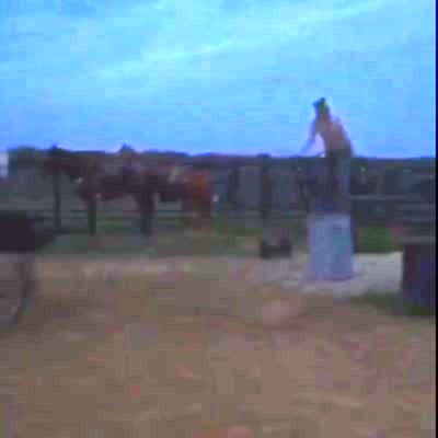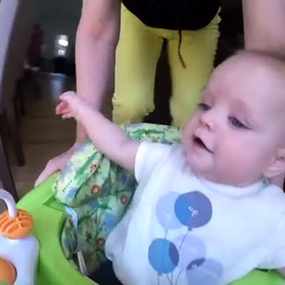 A tot boy drinks water out of a plastic bottle while sitting on a toy tractor outdoors. He leans forward to set the water bottle down when he loses his balance and smashes his head into the tractor steering wheel while simultaneously crushing the water bottle. Vine/instagram.