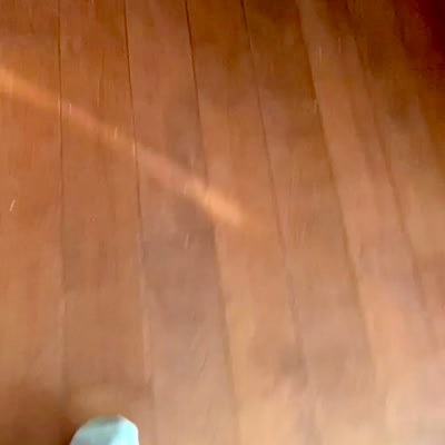 A tot girl drops the camera phone on her mom's foot and she yells in a kitchen. POV.