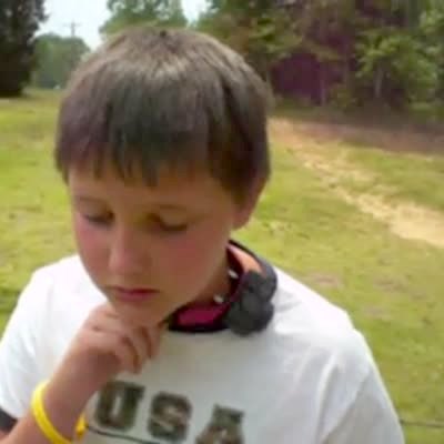 Young boy is bet 5 dollars to shock himself with an electric dog collar. He gets shocked, cries and laughs. Joe Love (BSP) killed when he saw in studio.