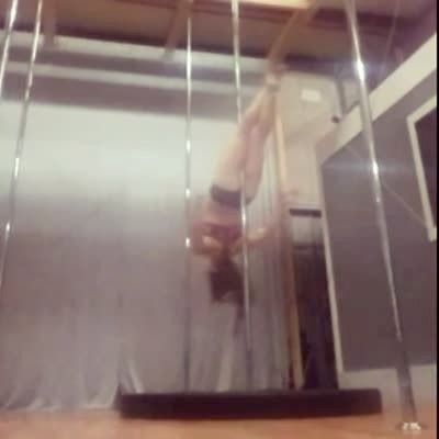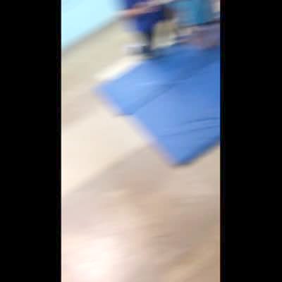 A teen girl tries to lift up a young girl and flip her over her head at a dance studio, but she drops the young girl on her face.