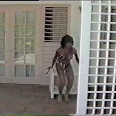 A teen girl dances on the edge of a hot tub and slips and falls onto the patio. Music rights not cleared.