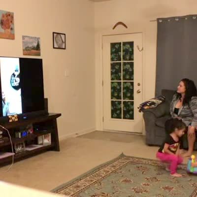 A mother tells her young daughter to say "Daddy's awesome" at home, and she does. Then the woman asks her to say "Mommy's awesome," and the girl laughs and says "no."