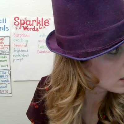 A woman teaches an online class from home with a purple top hat. She gets distracted by her daughter and yells at her for interrupting. She then switches from angry to happy and continues her lesson.