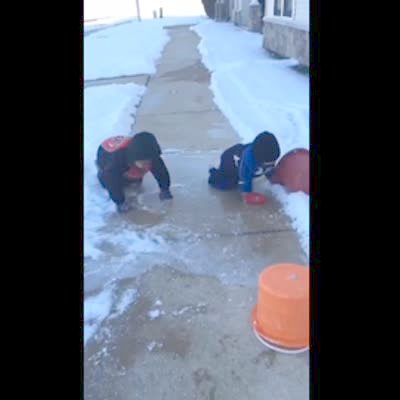 A group of boys work together to dunk a basketball in a swimming pool, synchronizing their jumps so they can pass the ball from one person to the next.