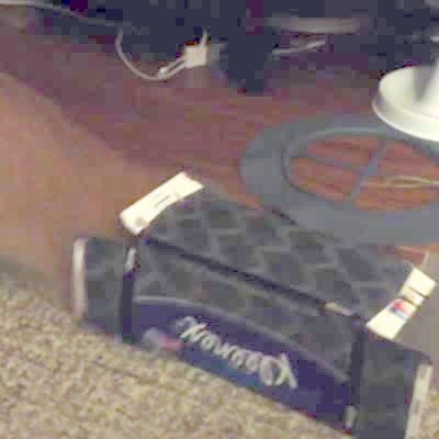 A tabby cat jumps into an empty tissue box repeatedly until the long box gets stuck on the cat's body and he walks with it before he falls over and struggles to get it off.