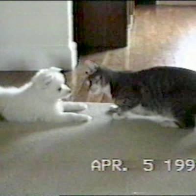"Tuna-Taking Tabby" A cat runs through the house with a woman's sandwich in his mouth and she chases him and yells for it back.