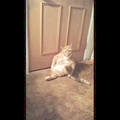 A gray male tabby cat hears the phone ring indoors and tries to get the phone off of the wall. Around 52 seconds, he climbs on the back of a chair and jumps at phone, then falls.