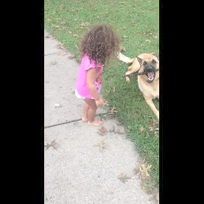 A tot girl gets upset when a dog takes a stick from her in the yard. She gets it back and then another dog takes it from her and runs away.