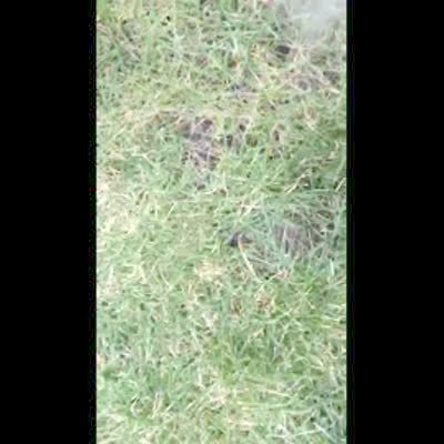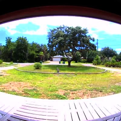 Chihuahua takes a ball of yarn through the house & out the doggy door. As man films the yarn outside, the dog runs up & steals it & runs away.