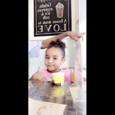 A woman places a chocolate on a dining table and a tot girl takes it away before the woman can finish explaining the rules of the temptation challenge. Short tail.