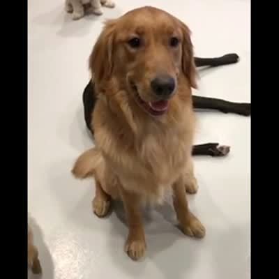A young girl does the disappearing human trick on a dog in the living room. When the dog gets back to the room, it drops the toy and runs around and looks for her. It starts to bark and then finds her when she moves under the blanket. Disappearing Human Trick