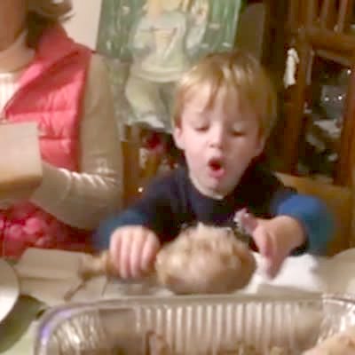 "I've Got a Wishbone to Pick With You" - A woman gets her son and daughter to break a turkey wishbone. The girl gets the bigger piece but cries when she doesn't immediately get the lollipop she wished for. The woman laughs and hugs the girl while her father jokes about her mother lying. The man says this video is worthy of AFV and the girl charges towards him.