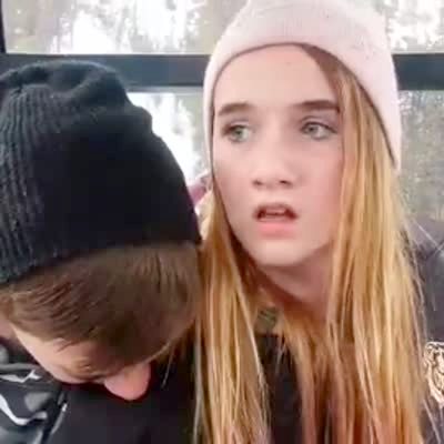 "Suspended Screamers" A teen boy and girl scream repeatedly in a gondola with their mom over a mountain. Their mom threatens to sing Taylor Swift and they scream "no!" She opens a window and they scream again.