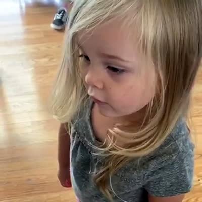 A woman asks her tot girl why she thinks it is okay to stick her tongue out at her, and the girl lists all the things her mom has taken from her before she sticks it out again and threatens to ground her mom.