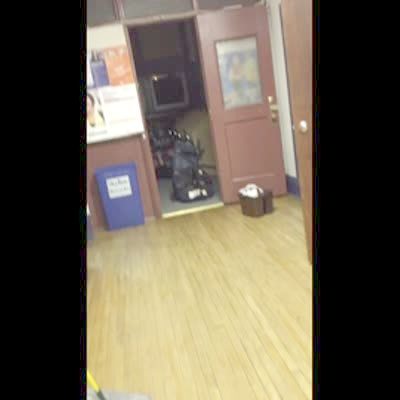 A young man walks through a doorway and his face hits a thin wall of saran wrap.