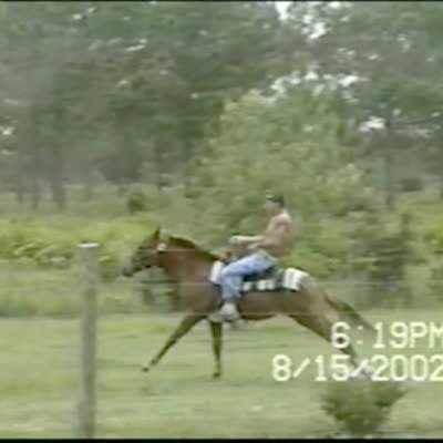 Horse runs wildly around, and throws a man into a shack.
